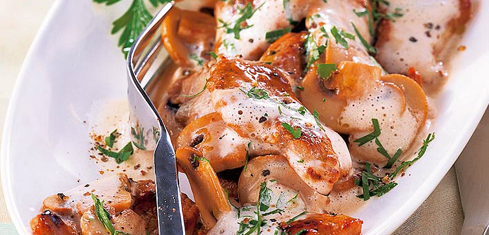 Zutaten für 4 Portionen 4 Stück Putenschnitzel à 150 g Salz und Pfeffer Olivenöl, zum Anbraten Für die Sauce 30 g Schalotten, fein gehackt 2 EL Butter 300 g Eierschwammerl, fein geschnitten 100 ml klare Gemüsesuppe 200 g QimiQ Saucenbasis Salz und Pfeffer 1 EL Petersilie, fein gehackt |