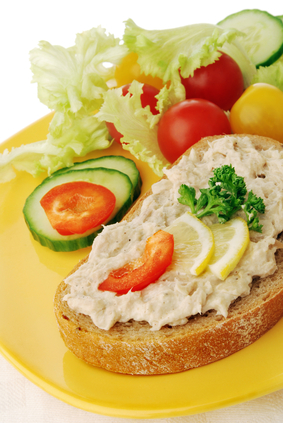 - Den Aufstrich mit Senf, Salz und Pfeffer würzen, in eine Schüssel geben, mit Cayennepfeffer bestreuen und gut durchziehen lassen