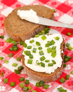 - Butter cremig rühren, Sauerrahm und Topfen dazurühren, Zwiebel und Essiggurkerl fein schneiden und daruntermischen
