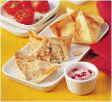 Zutaten: für 6 Taschen • 2 Blätter Tante Fanny Frischer Filo- oder Yufkateig • 250g Forellenfilet, geräuchert • 2 EL Crème Fraîche • Saft einer halben Zitrone • 1 Bund Schnittlauch, fein geschnitten • Salz und Pfeffer • 1 Eiklar zum Bestreichen Zubereitung: Zubereitungszeit: ca. 35 Min. Backzeit: Ober-/Unterhitze: 180° C, 10 Min. Heißluftofen: 170° C |